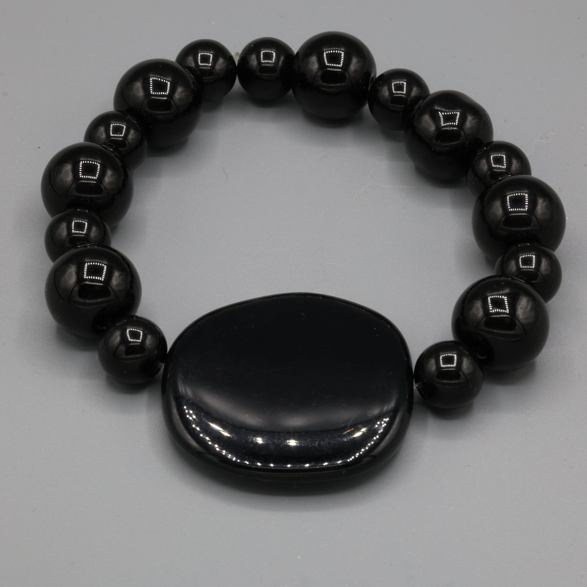 A bracelet that speaks in stillness and strength. Smooth black jasper beads form a rhythmic circle, each one a vessel of grounding energy and quiet resilience. The central bead, slightly larger, draws the eye inward—like a heartbeat in stone. Known for its protective and stabilizing properties, black jasper is a talisman for clarity and calm. Wear it as armor for the spirit, or as a minimalist accent with elemental depth.