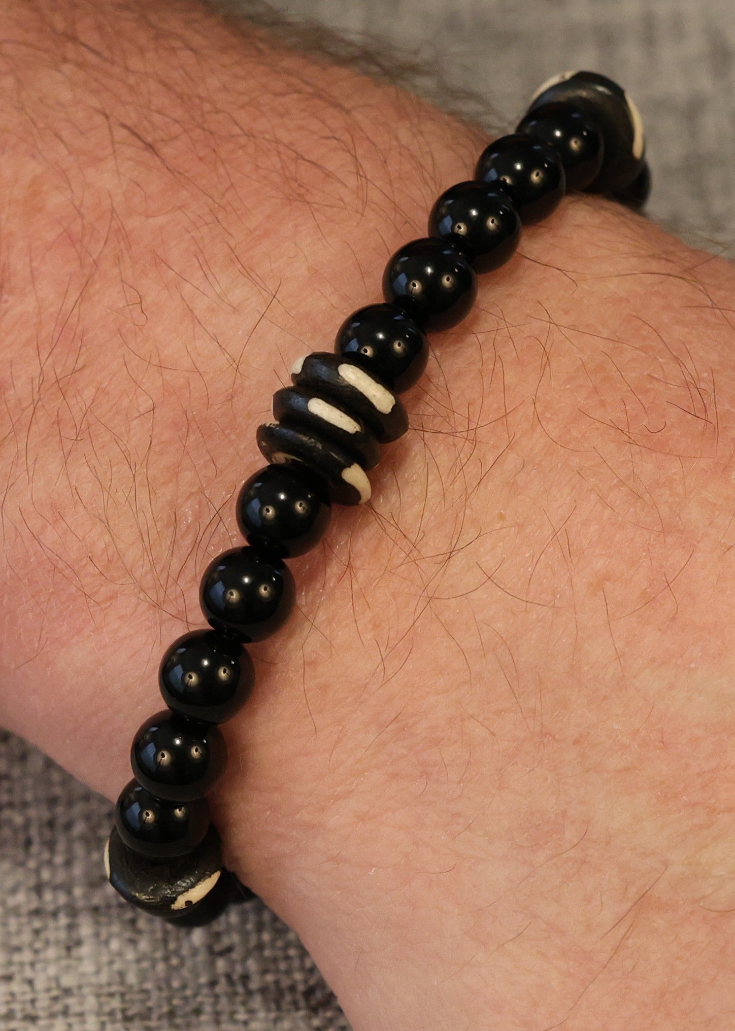 Grounded in strength, cloaked in calm. This bracelet features 8mm black jasper beads and accent stones, each polished to a smooth finish that radiates quiet power. Known for its stabilizing energy, black jasper is a stone of protection and inner resilience. Minimalist yet deeply intentional, this piece is designed for those who move through the world with quiet confidence and rooted clarity.