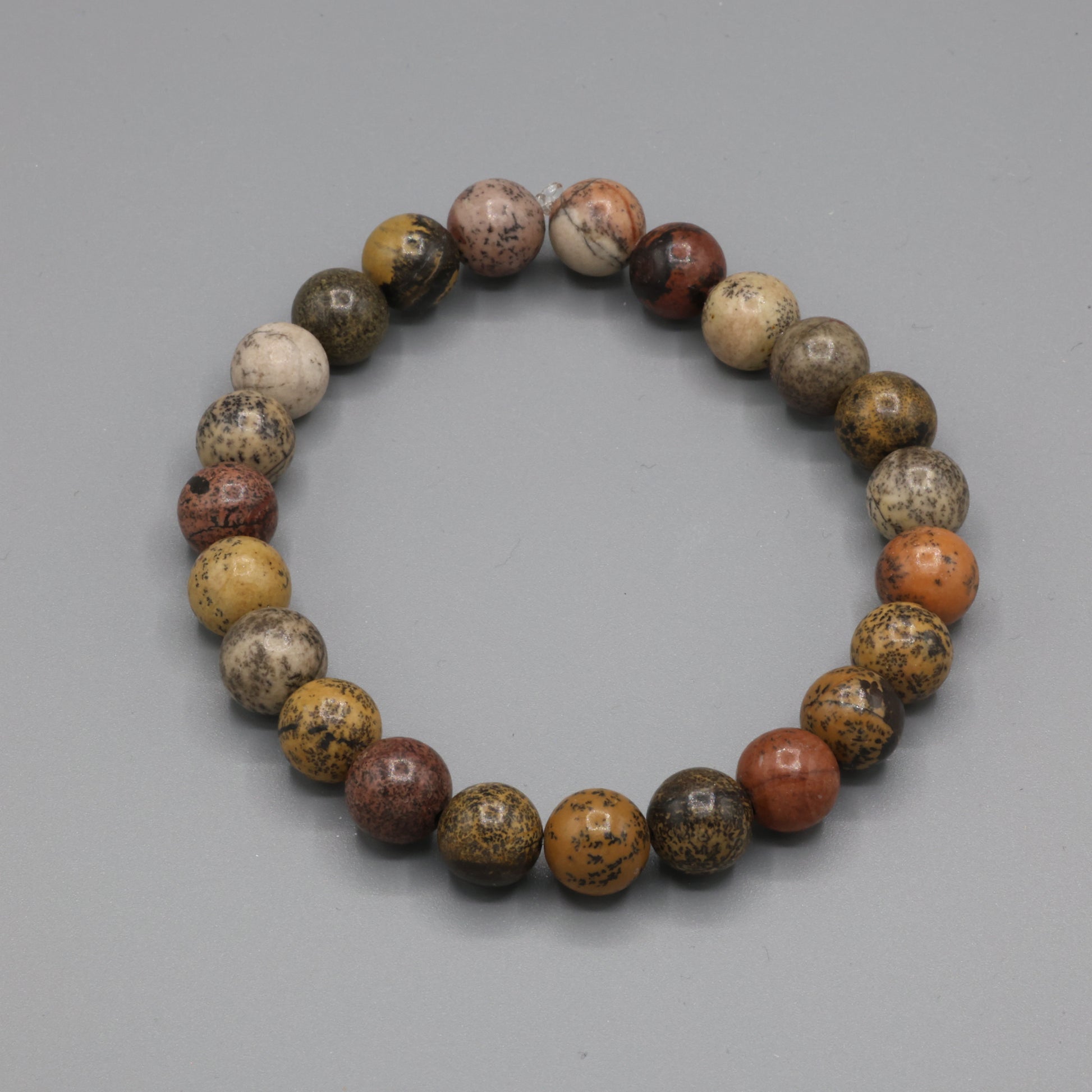 Handcrafted bracelet made with 8mm multicolor jasper beads, each one a swirl of earth tones—terracotta, moss, sand, and stone. Known for its grounding energy and connection to nature, jasper invites calm and clarity. This piece is a tribute to the traveler’s spirit and the comfort of home, perfect for those who walk through life with intention and wonder.