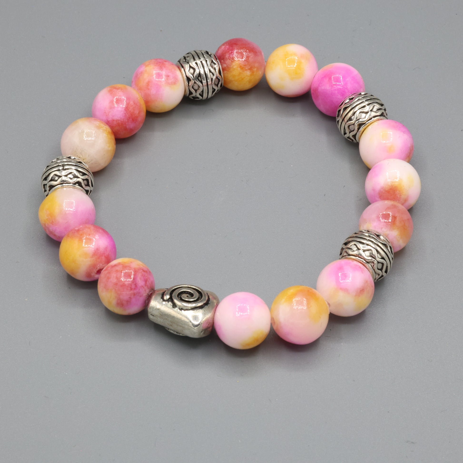 A radiant blend of pink and yellow Persian beads, accented with intricate silver details that shimmer with timeless elegance. This handcrafted bracelet evokes warmth, joy, and soulful beauty—a celebration of color, culture, and individuality, designed to adorn your essence with intention.
