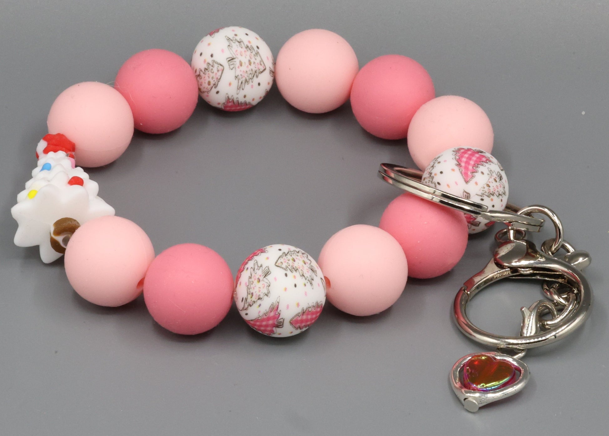 Soft, sweet, and full of seasonal charm, Blush Tree features pink silicone beads accented with delicate tree designs and a petite white tree charm. This bracelet-style keychain blends nature-inspired whimsy with everyday function—perfect for gifting or adding a touch of blush-toned beauty to your essentials.
