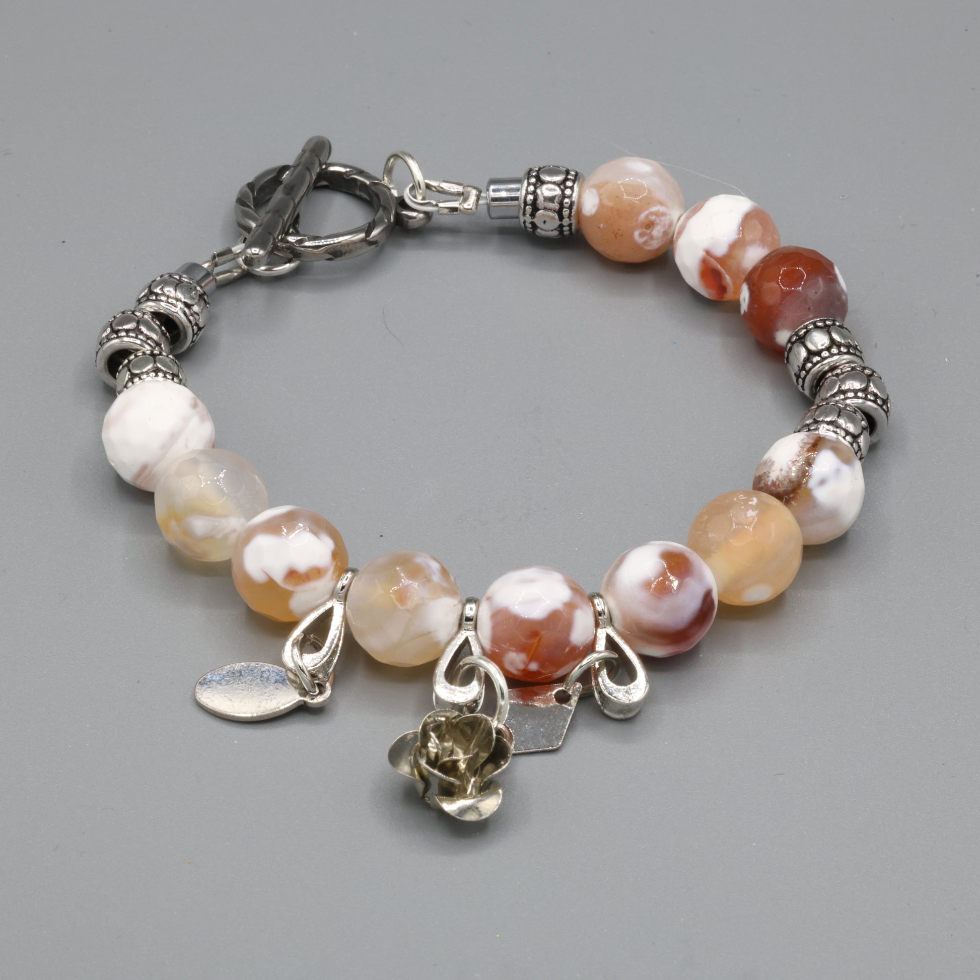 A quiet shimmer drawn from stone and spirit. This bracelet features crackled decorative beads in warm, natural tones, accented by silver-plated charm beads that catch the light with subtle grace. A piece that speaks of grounding, beauty, and the quiet strength within.