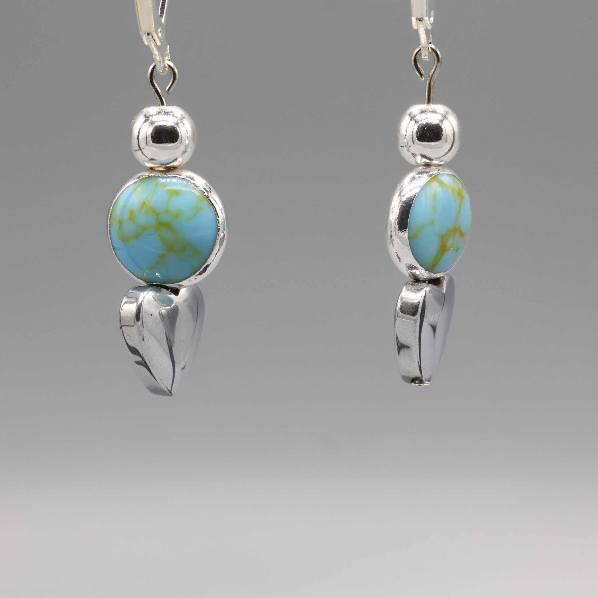 A balance of strength and serenity. These earrings feature turquoise-like beads paired with hematite heart accents, blending soothing color with quiet resilience. Lightweight and full of presence, they offer a grounded elegance that speaks to the soul